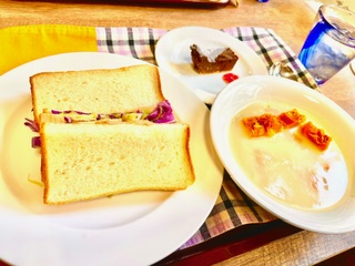 函館高等支援学校でランチ「Hako cafe clover」 2024/10/29 函館高等支援学校内の一角にカフェがあります。 その名もHako cafe clover!400円のランチメニューにコーヒー100円はかなりコスパがいいです! そして、生徒さん達や先生方が一所懸命に接客や調理をしている姿を見ると元気になります。 シチューに入っていた人参ですが、トランプのマークがそろってました(^^♪